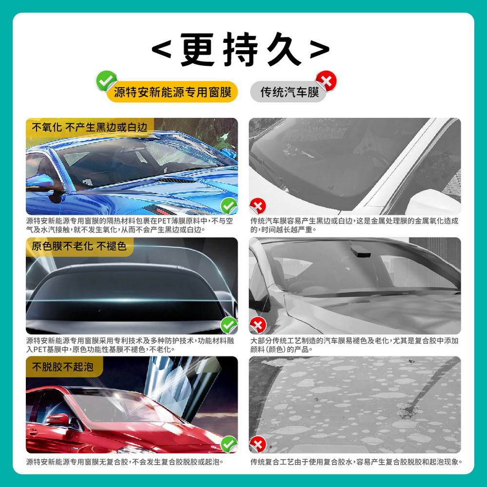 源特安5G窗膜,除了具備高隔熱、高清晰的優勢和穩定持久的性能之外,主要的特點是“信號0阻隔、甲醛0釋放”,不含有金屬,不會阻隔車機信號,更好地保障行車安全,產品通過國際SGS檢測,不含甲醛、苯等46種有害物質,保障車內司乘人員的健康。